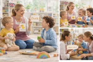 Angličtina sa objavuje v bežných situáciách – pri obliekaní, hre, jedení, upratovaní či spievaní. Deti počujú jazyk opakovane a v kontexte, ktorý im dáva zmysel.